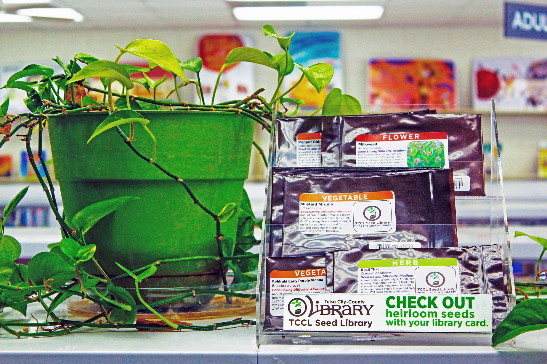 With your TCCL card, you can check out up to 15 packets of seeds. Save seeds from the best plants and return them to the library for others. To find available seeds, use the online catalog and search for “seed library” or browse what’s available at our Seed Library locations, which include the Bixby, Central, Collinsville, Glenpool, Hardesty Regional, Martin Regional, Nathan Hale, Suburban Acres and Zarrow Regional libraries. Learn more at www.tulsalibrary.org/seed-library.