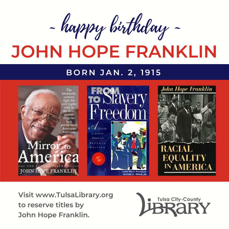 John Hope Franklin (born Jan. 2, 1915): "On September 29, 1995, John Hope Franklin, a scholar of U.S. history, received the nation's highest civilian award, the Presidential Medal of Freedom. According to the program, it is awarded by the President of the United States 'to those persons whom he deems to have made especially meritorious contributions to … the United States, to world peace, or to cultural or other significant public or private endeavors.' In so honoring Franklin, President Bill Clinton spoke of Franklin's outstanding contributions. The citation read in part: “His extraordinary work in the field of American History and his studies of the South have earned John Hope Franklin the respect and admiration of people throughout the world. … Following his maxim to `look history straight in the face and call it like it is,' he has helped to define who we are and where we have been, and he has encouraged each of us to look forward to where we are going.'" From Notable Black American Men, Book II. Read the full piece here.